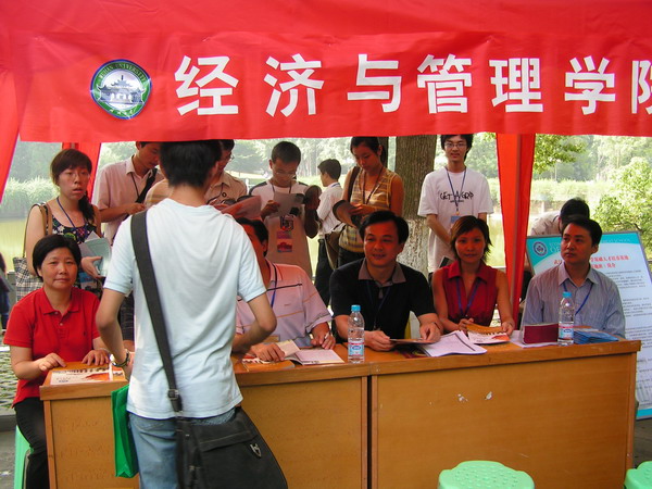 在咨询现场,经管学院的工作得到了校长刘经南的赞扬。招生就业办主任钱建国博士也对海角社区 的组织准备工作表示满意。(学生工作办公室供稿)