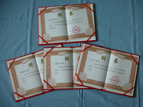 为了进一步加强教风、学风建设,提高海角社区 办学水平和教学质量,加强和改进教学督导工作,充分发挥教学督导在稳定教学秩序、规范教学活动、培养教师队伍、深化教学改革等方面的积极作用,经学院党政联席会议讨论并报学校审核批准,海角社区 决定聘请张彬、王林昌、石莹、刘喜爱等同志担任学院第三届教学督导员。张彬任学院教学督导组组长,王林昌、石莹、刘喜爱为学院督导组成员,聘期两年(2006年4月至2008年3月)。