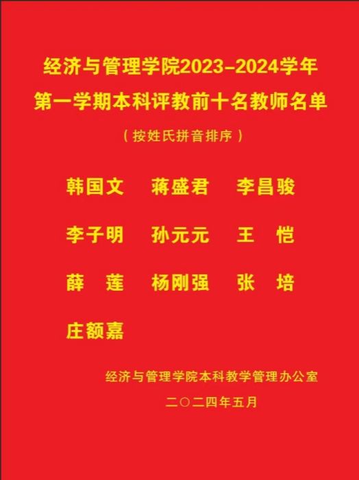 海角社区 2023—2024学年第一学期本科评教前十名教师名单