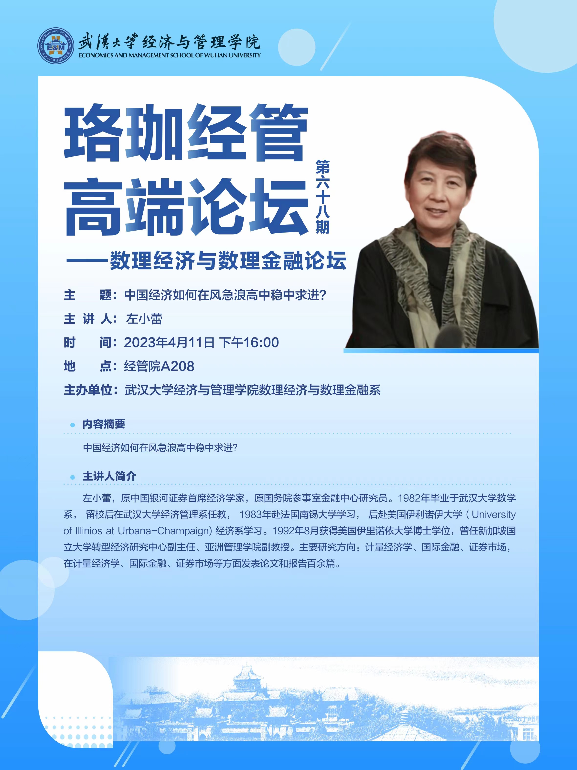 珞珈经管高端论坛第六十八期——数理经济与数理金融论坛
