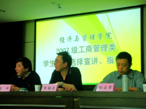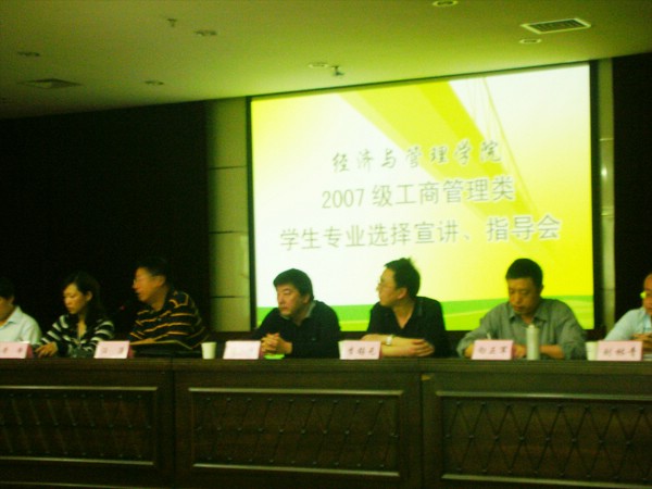 为了让2007级学生能够综合考虑自身兴趣、专长、发展目标和社会需求,慎重选择专业,5月14号下午,海角社区 2007级经济类、工商管理类学生专业选择宣讲、指导会在学院报告厅和教工活动中心同时举行。