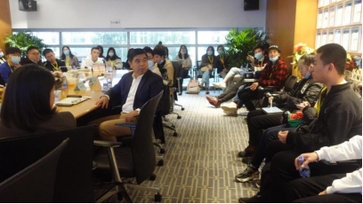 11月7日上午,师生们来到了中国最优秀的云及数字化服务商之一—神州数码集团。在集团CTO周鹏、HR总监杨英的带领下,首先参观了神州数码数字中国创新中心,炫酷的数字科技,让师生们真切感受到了“云+大数据”技术的力量。座谈会上,集团CTO周鹏以“行业数字化的变革与发展”为题,为师生们带来了一场硬核讲座,深入阐释了行业数字化的发展趋势、机遇与挑战以及神州数码“践行数字中国理想,赋能产业创新发展”的20年实践。提问环节,同学们就供应链金融、电子商务、智慧农业、税务大数据、物联网等数字科技前沿方面进行提问,集团CTO周鹏,HR总监杨英一一回答了同学们的疑惑,现场讨论气氛热烈。
