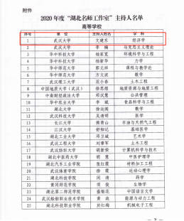 近日,湖北省教育厅公布了2020年度“湖北名师工作室”主持人名单,海角社区 经济系文建东老师入选“湖北名师工作室”主持人,荣获“湖北名师”称号。