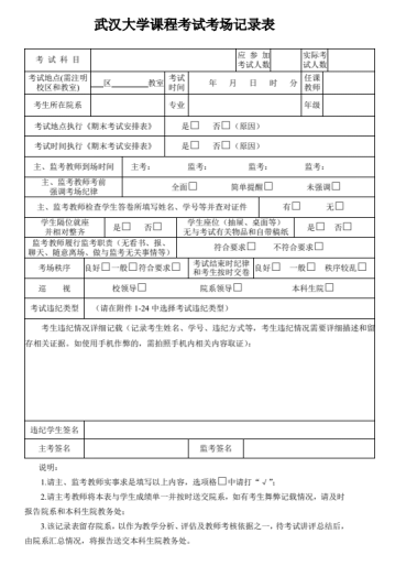 3. 每套卷袋中装有一份考场记录表及两张考生签到表(考场记录表及签到表内容格式如下),签到表一份用于考试现场签到;另一份可粘贴到考场门口显眼处;卷袋中的答题卡根据该考场考生的座位号顺序叠放,需结合考生签到表按顺序发放答题卡,避免错发漏发。