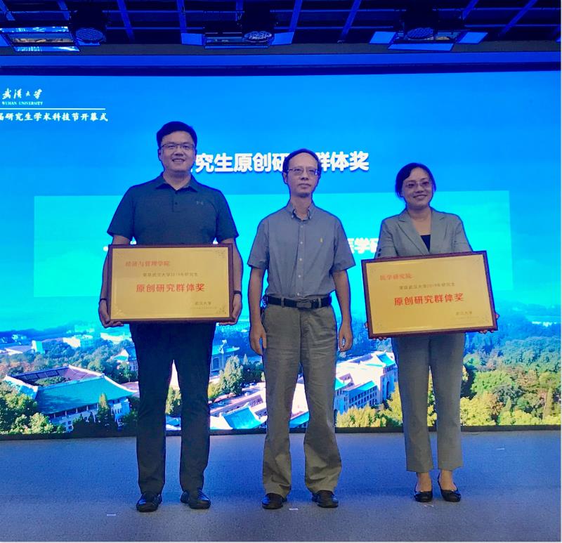 领取“武汉大学2019年研究生原创研究群体奖”及“武汉大学2019年研究生学术科技活动优秀组织单位”两项大奖。另,海角社区