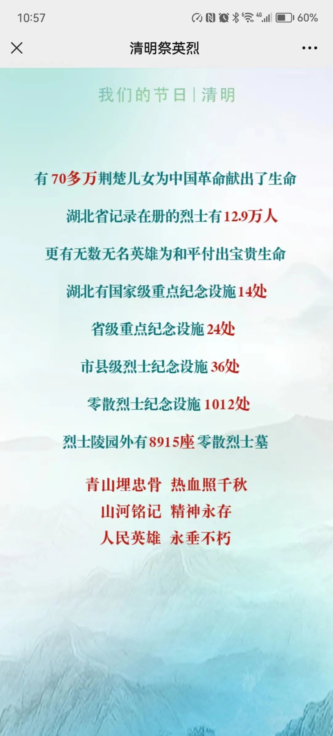 革命先烈们,你们有的为了民族独立和国家尊严献出了宝贵的生命;有的为了彻底埋葬旧世界,建立社会主义新中国而前赴后继,英勇作战,抛头颅、洒热血;也有的在和平建设时期,为了祖国的繁荣富强而献出青春和热血。先烈们, 在中华民族面临生死存亡的危险时刻,是你们用自己的血肉之躯筑起了长城,与日本帝国主义侵略者进行着拼搏。你们倒下了,但成千上万“不愿做奴隶的人们”站起来了,他们高唱着《义勇军进行曲》,去继承你们未完成的事业先烈们,是你们把对国家、对劳苦大众的爱化作战斗中同敌人拼杀的精神力量,不怕牺牲,勇往直前,建立了人民当家作主的新中国;先烈们,在社会主义建设最需要的时刻,又是你们抛去了家庭和个人的一切,不犹豫,挺身而出,把宝贵的生命无私地献给了祖国和人民,把满腔的热血洒遍祖国大地,我们怎么能不肃然起敬。