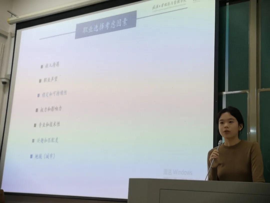 杨天天学姐分享了自己的职业选择原因:综合考虑了收入待遇等七项因素,她最终并没有选择互联网或地产行业,而是选择了一份相对稳定的工作。随后她分享了商业银行、武汉市选聘生、高校行政岗的笔试和面试经历,并强调英语在面试中的重要性。