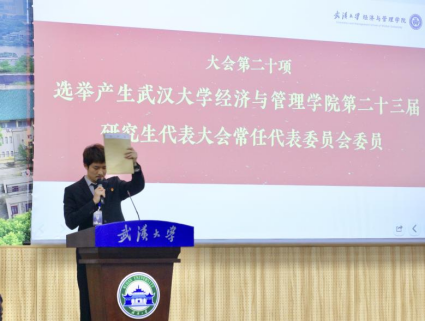 会议最后,经过研究生代表大会主席团推荐,王乔嘉玉、李芷馨、徐高铮同学成为武汉大学第二十次研究生代表大会常任代表委员会委员候选人提名人选。