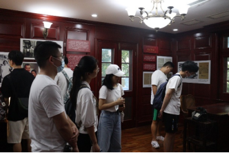 随后,支部同学们共同参观了位于珞珈山上的周恩来故居。小别墅旁树林掩映,鸟啼婉转。故居内,当年周恩来与邓颖超用过的物品和留下的照片,生动的讲述着那些隔着时光之河的历史故事。在讲解员的解说下,支部同学们还学习了武大见证国共两党合作共同抗日的历史。