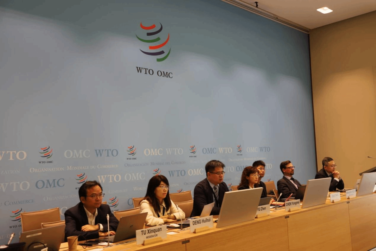 Our School's director of the Institute for the U.S. and Canadian Economies of Wuhan University, Professor Yu Zhen, attended the side event as a special guest expert. The meeting also included experts from the China Academy of Macroeconomic Research, the University of International Business and Economics, and Southwest University of Political Science and Law, as well as representatives of Singaporean foreign-funded enterprises in China. In addition, over a hundred participants from the WTO Secretariat, WTO member states, international organizations, and the media were present.