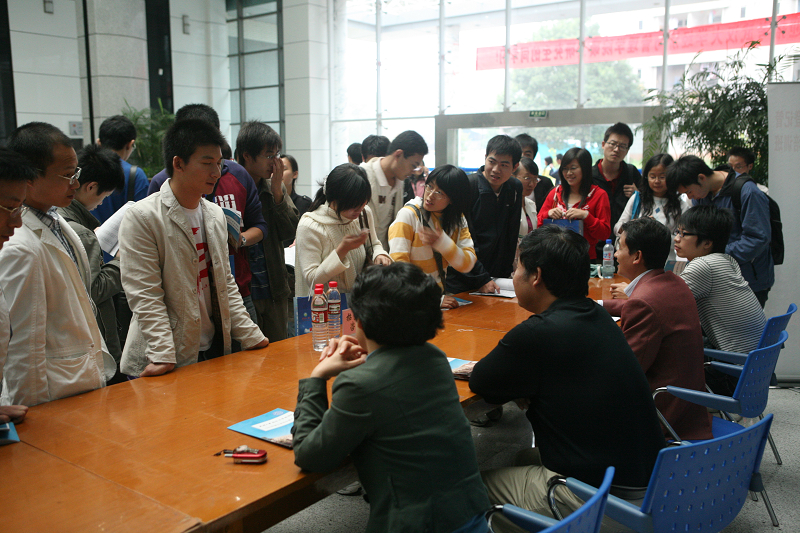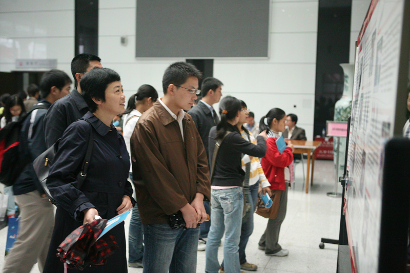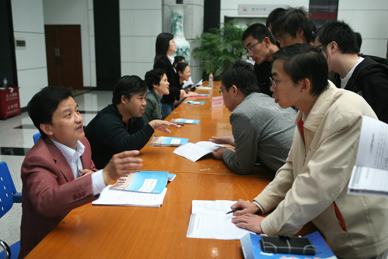 的学生汇聚学院亮胜楼,就关心的问题进行咨询。为了让参加活动的同学们更好了解学院各学科情况和招生政策,学院领导安排研究生教学管理办公室、学生工作办公室、党政办公室、学院图书馆、实验室协同学院八个系和两个研究所的博士生导