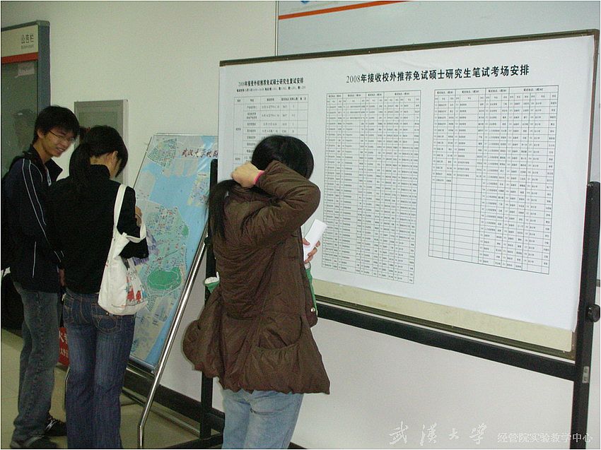 下午2点复试笔试在教一楼进行,根据各专业性质和报考人数,分为了四个考场,考生分别进入相应的考场进行专业课笔试;笔试之后由各系、所的老师对学生进行了严格的专业面试和英语面试。