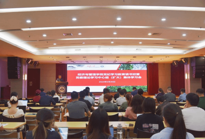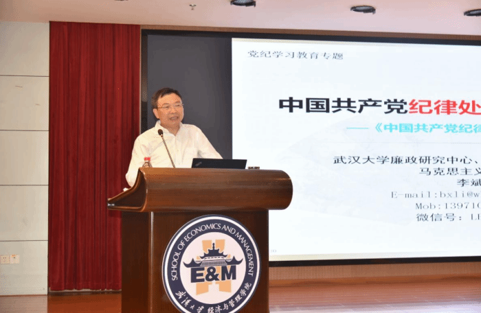 5月30日下午,学院召开党纪学习教育读书班暨党委理论学习中心组(扩大)集体学习会,特邀武汉大学马克思主义学院教授、博士生导师李斌雄老师作专题辅导报告。学院领导班子成员、各行政教辅办公室负责人、师生党员代表等参加会议,校党纪学习教育第四督导工作组马玥列席会议,会议由学院党委副书记杨志威主持。