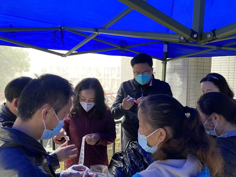 在学院党委发出快速组建疫情防控突击队的号召后,全院教职工无论党员还是非党员都积极响应、踊跃报名。11月24日晚即完成了18名校内队员的召集工作;11月25日,随着学校允许校外老师加入突击队,各个教职工党支部又广泛征集到共36名志愿者。于是,一支54人的学院突击队火速成立!在学院党委书记姜星莉、副书记谢雅维、李好的带领下,大家已积极投身于志愿服务中,全力保障负责包保的枫园11、12、13、14舍的同学们。
