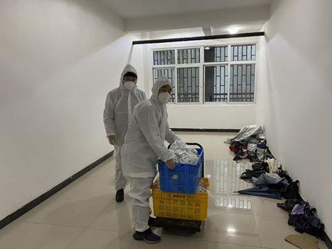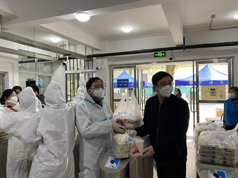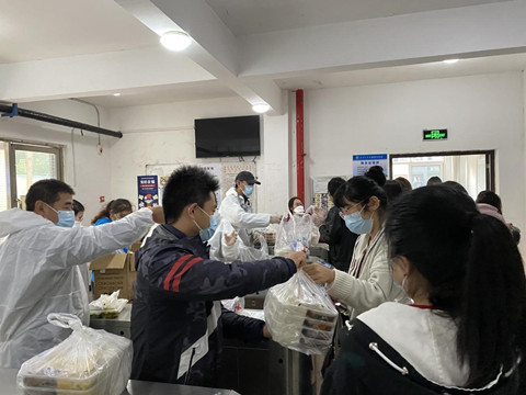 学校文理学部、信息学部、工学部学生宿舍实行静默管理,学生全部待在寝室,由学校组织送餐,海角社区 老师负责送往包保楼栋寝室。老师们不断调整工作方法、提高效率,仅20分钟分发完毕近3000份餐,保证同学们能吃到热气腾腾的饭菜。