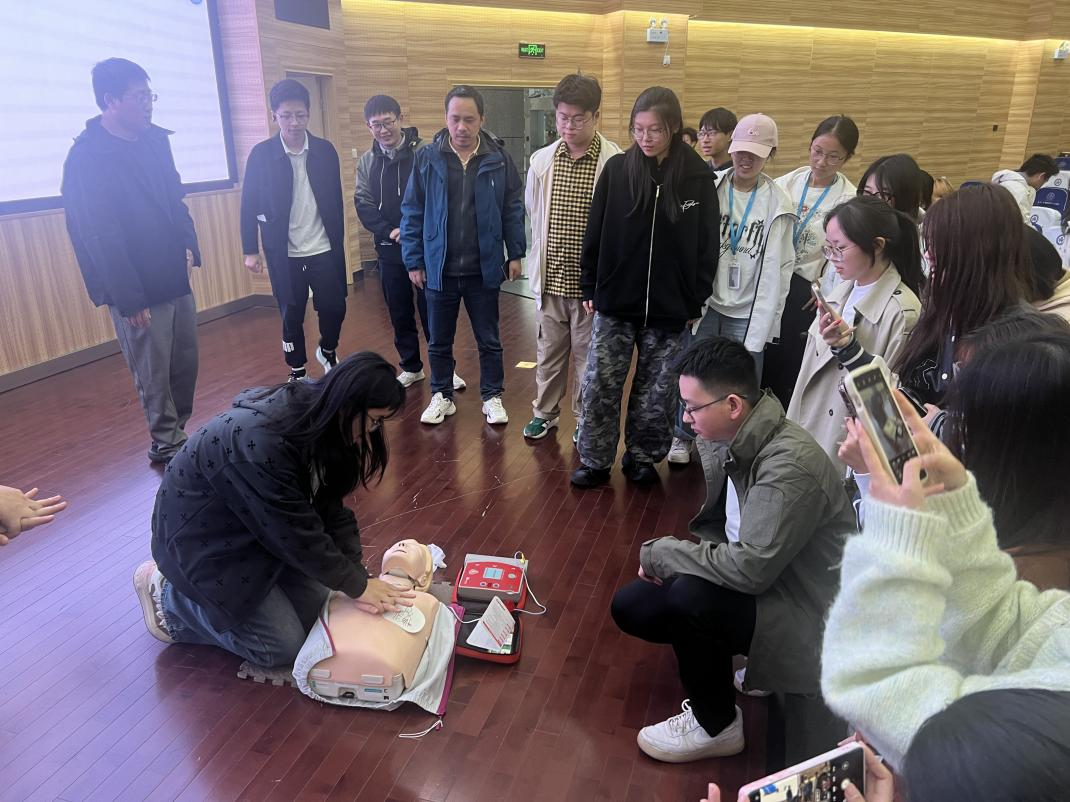 讲座重点介绍了徒手心肺复苏术(CPR)、气道异物梗阻救助方法(海姆立克急救法)以及AED(自动体外除颤器)的工作原理和使用流程,并结合真实案例解析施救中常见误区,引导师生掌握科学施救的关键要点,提高紧急情况下的操作判断能力。