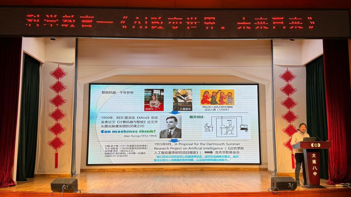 为增进辽宁优秀学子对武汉大学的了解,吸引对前沿科技充满热情的年轻才俊,11月19日,武汉大学辽宁招生组大连片区负责人石岩老师与人工智能学院谢榕教授携手赴大连市第八中学,成功举办了一场人工智能主题讲座与招生政策宣讲活动。大连市第八中学副校长于杰、崔贺,教学主任董平、副主任王英策,以及全体高三年级学生和班主任共同参与了此次活动。